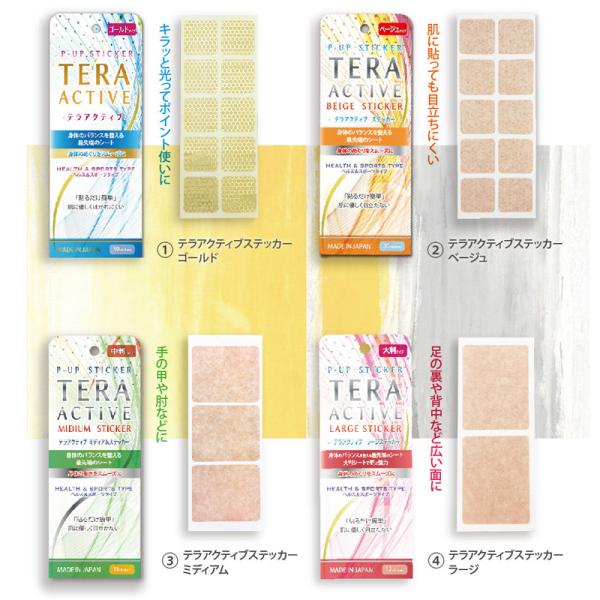 P UP TERA ACTIVE STICKER ピーアップ テラアクティヴ ステッカー 大判サイズ 12枚入 中判サイズ 18枚入 ゴールド 30枚入 ベージュ ブルー グリーン レッド ピンク オレンジ イエロー テラヘルツ波 筋肉ケア 健康シート 貼る はる 足 肩 腰 腕 足裏 背中 関節 筋肉 オールシーズン 母の日 父の日 敬老の日 誕生日 プレゼント 贈り物 ギフト