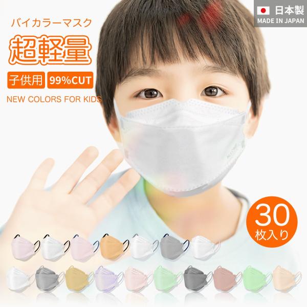 日本製マスク 子供用 3Dマスク バイカラーマスク 30枚入 立体マスク キッズ マスク 不織布マスク 抹茶マスク キッズマスク 小顔マスク 血色マスク 普通サイズ