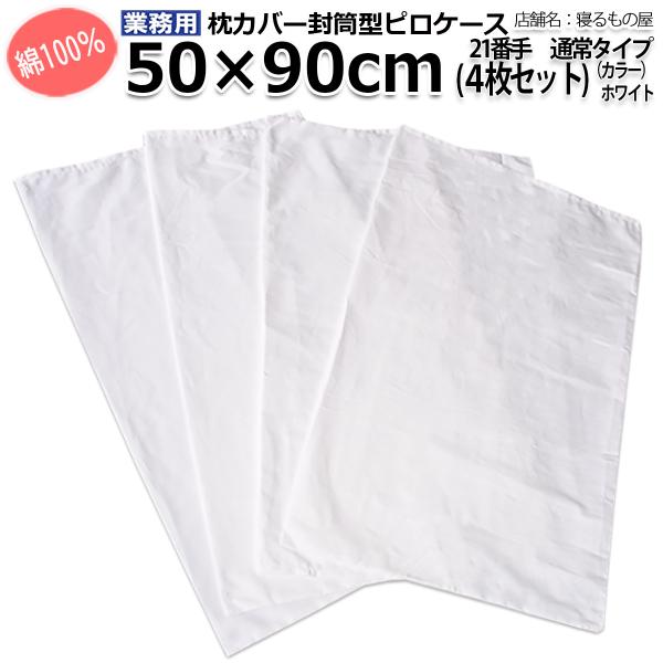 枕カバー業務用【4枚入】綿100% 50×90cm 通常タイプ ポスト投函発送配達 ピローケース 封筒型 ホワイト 白 三露産業 ホテル 旅館 民宿 民泊