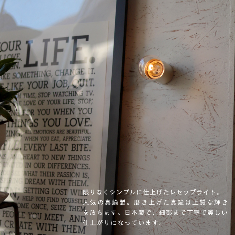 ウォールライト レセップ ブラケットライト 日本製 真鍮 E26 シリンダーライトブラス おしゃれ シンプル 1灯 小型 壁 天井直付け 照明器具 ランプ LED電球専用