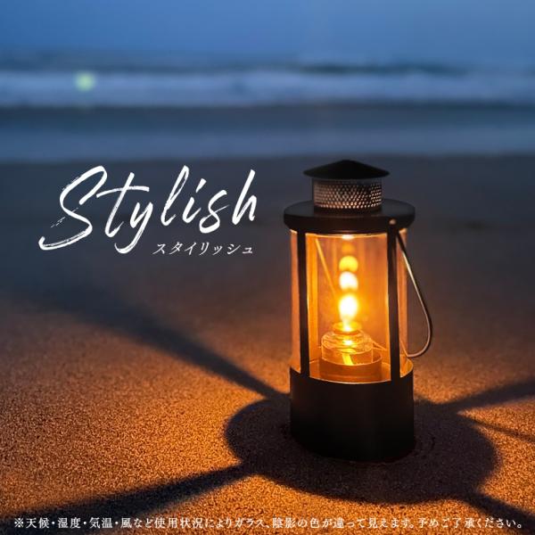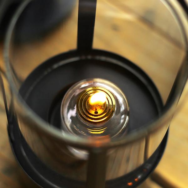 クリアホヤなので、中の炎がくっきり見えて、美しい生火のゆらぎを見つめることができます。細長い筒状のガラスに覆われている防風仕様で、風に強いのでキャンプなどのアウトドアのランタンとしておすすめ。