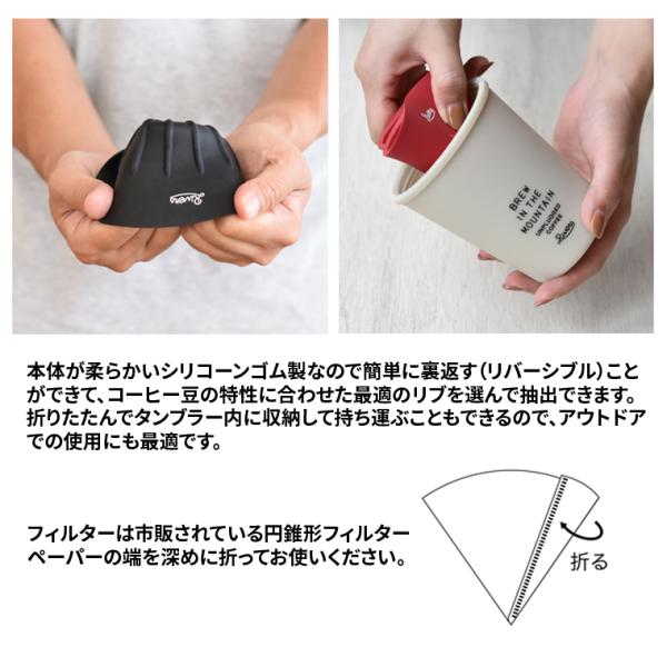 ・コーヒードリッパー「ケイブR(リバーシブル)」(ブラックorレッドorオリーブ)