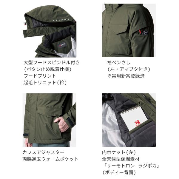 BURTLE バートル 秋冬 7620 防水 防寒 ジャケット パーカー 撥水 防風 アウトドア キャンプ 服 作業着 アウター ブルゾン ジャンパー