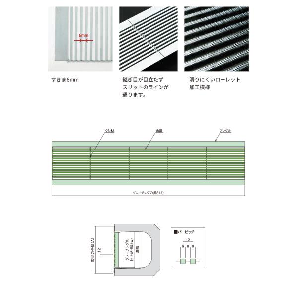 ・グレーチングの継ぎ目が目立たず、スリットのラインが通ります。