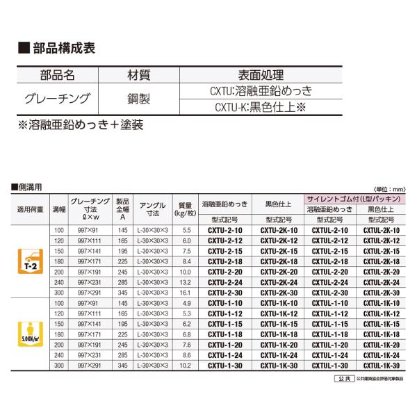 U字溝用 グレーチング CXTU CXTU-K オクト・イー スチール製 極細目 平行タイプ ローレット加工 すきま6mm T-2 歩道 中部コーポレーション