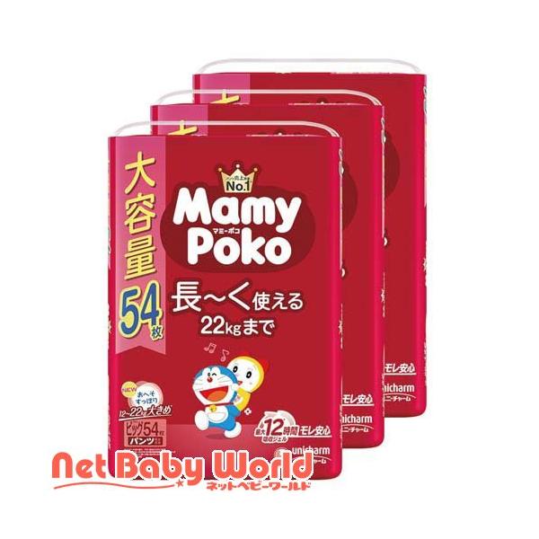 マミーポコパンツ ドラえもん ビック 12kg〜22kg 紙おむつ パンツ ( 54枚×3個 )/ マミーポコパンツ