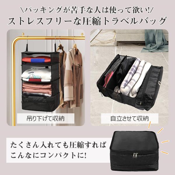 トラベルポーチ 旅行用圧縮袋 【軽い&壊れにくい】旅行用ポーチ 吊り下げ 収納ポーチ クローゼット ファスナー 圧縮バッグ 衣装ケース 着替え かわいい