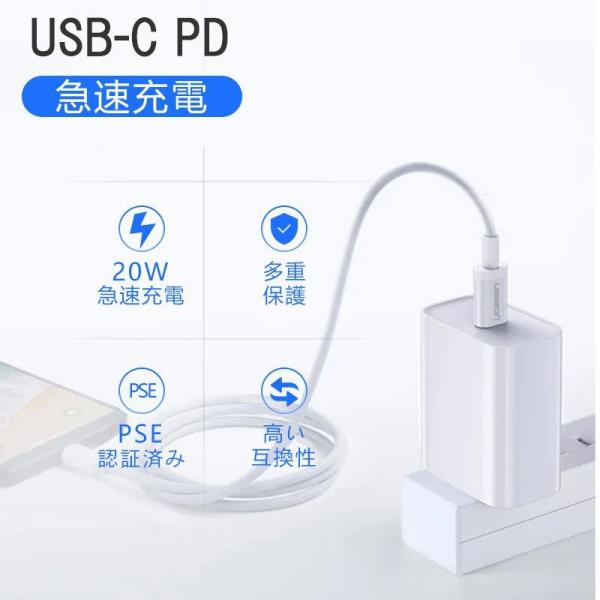 充電器 type c 20W USB-C急速充電器 PD充電器 PD充電ケーブル 2点セット 急速充電 PSE認証済