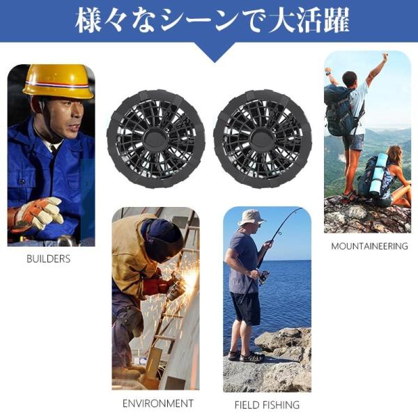 ★【5時間以上連続稼働&互換性高い】空調作業服ファンは優れたPC素材を採用し、衝撃、高温に強く、耐久性が抜群です。10000mAのバッテリーは稼働時間は約5.5〜6時間となります、