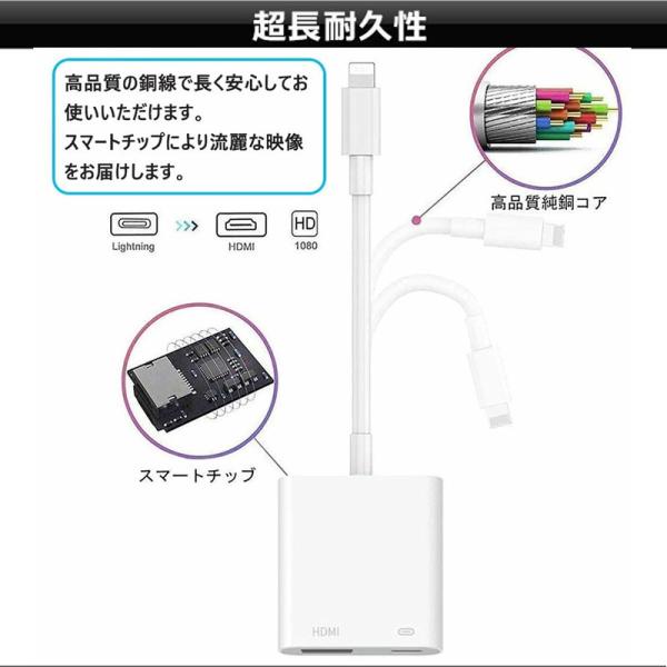 iPhone HDMI 変換アダプタ アイホン高品質 AVアダプタ HDMI ケーブル 1080P 音声同期出力 電源不要 高解像度