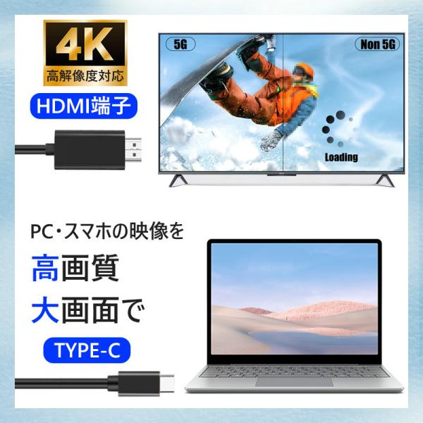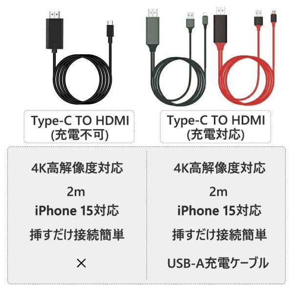 HDMI 変換ケーブル type-c 2m 4K hdmi タイプc USB-C 変換アダプター アンドロ Iphone 15 Iphone 16 急速転送 簡単接続 Mac Windows 一年保証