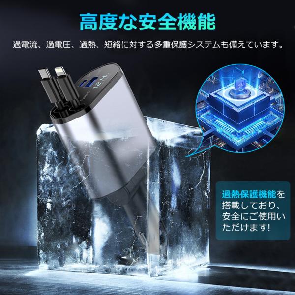 シガーソケット カーチャージャー USB 4in1 巻き取り 急速充電 自動車用携帯充電器 スマホ充電 シガーチャージャー12V-24V対応 iphone Android