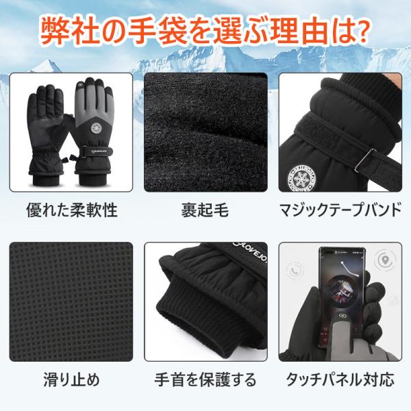特徴:滑り止め、手の保護、防寒、防水、スマホ操作、摩擦防止
