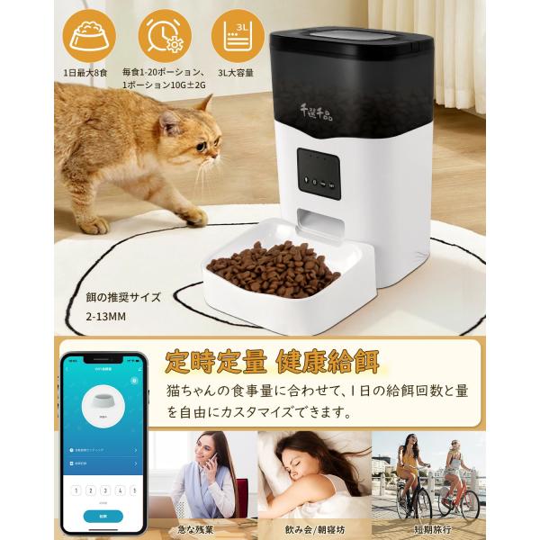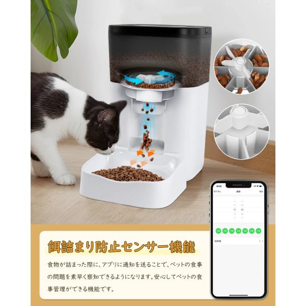 自動給餌器 給餌器 猫 犬用 3L 大容量 餌やり いたずら防止 遠隔操作 録音機能付き 留守保護 定時定量 透明タンク 湿気を防ぎ 2WAY給電 手動給餌可