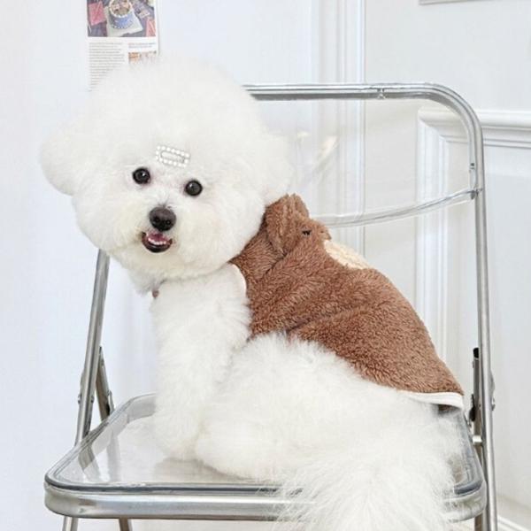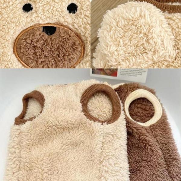 冬 犬服 新作 超可愛い! くま耳付き もこもこタンク 犬猫服 あったか防寒 秋冬春 トップス【a424】