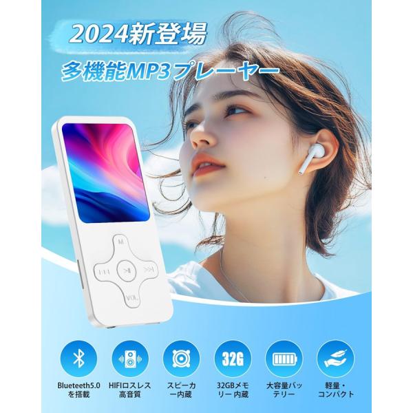 MP3プレーヤー 多機能デジタルオーディオプレーヤー 32GB内蔵 Bluethteeth5.0 HIFIロスレス スピーカー内蔵 操作簡単 FMラジオ OTG機能 音楽/写真/ビデオ/電子ブック/アラームなど機能 通勤通学/言語学習/会議レコード/スポーツ/ジムなど適用 日本語説明書