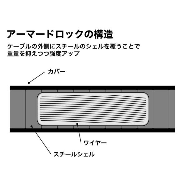 20mmのアーマードシェルを採用し、インナーケーブルをカバーしたアーマードケーブルロック