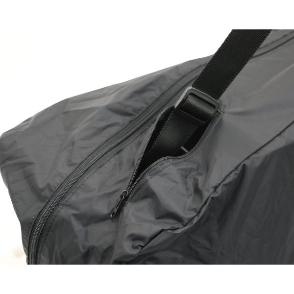 ファスナーを開いて車両を入れ、付属のショルダーを用いて