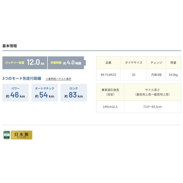バッテリー容量:12.0Ah/ 充電時間4.0時間
