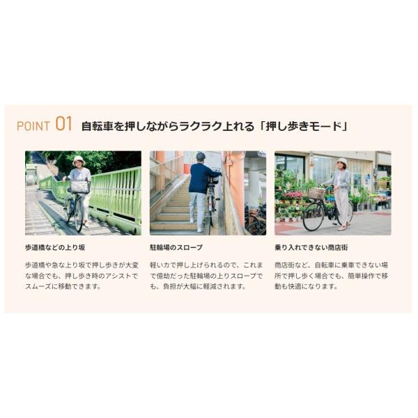 押し歩きモード搭載! 歩道橋や駐輪場のスロープも押し歩きラクラク