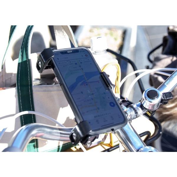 自転車などのハンドルにスマートフォンを装着するホルダー。