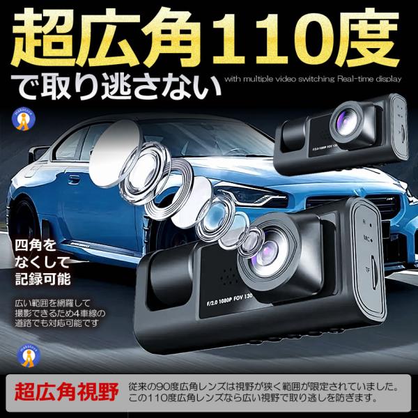 このドライブレコーダーにはデュアルカメラが装備されています。