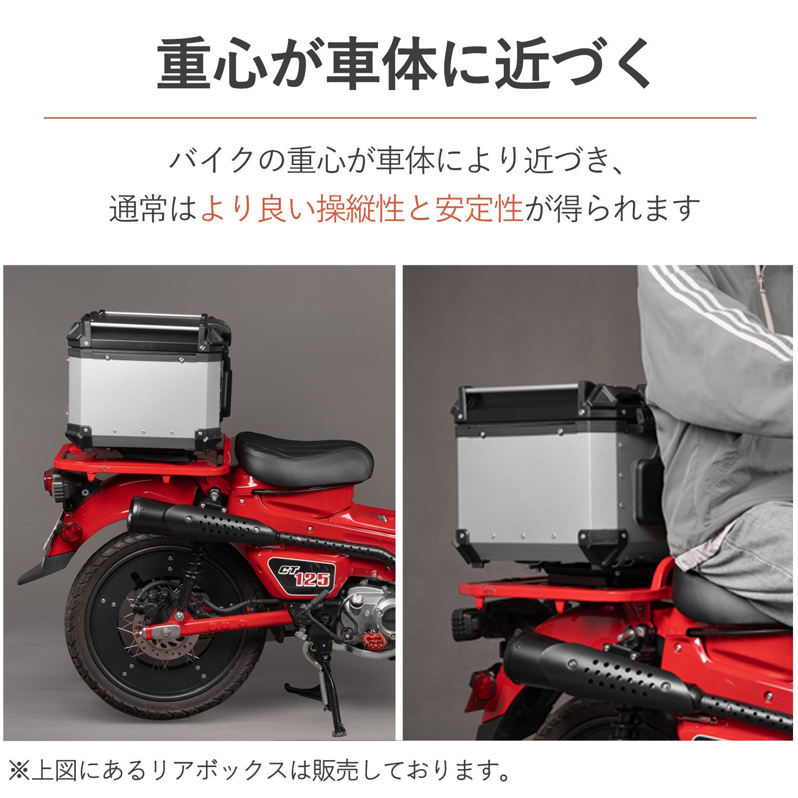 【アクセサリーとしての役割】 注意点として、この商品は「リアボックスそのもの」ではなく、リアボックス用の「アクセサリー」です。リアボックス自体は別途購入が必要ですので、ご注意ください。