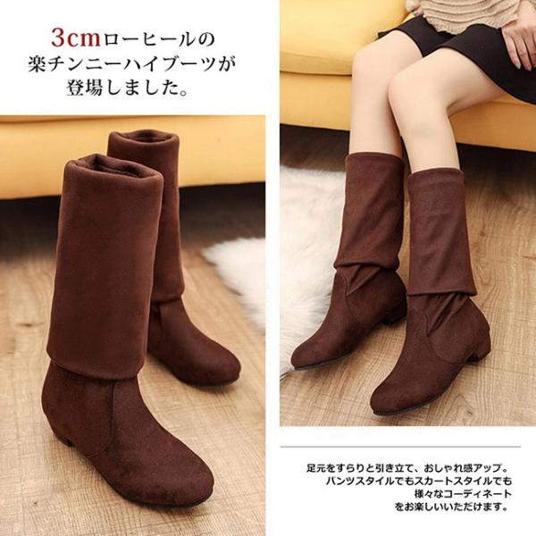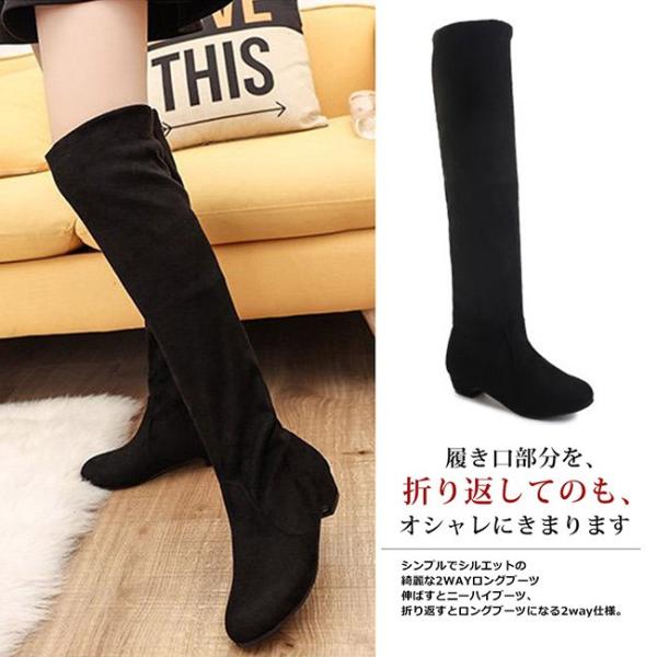 ロングブーツ レディース ニーハイブーツ 2way 無地 ローヒール 厚底 美脚 カジュアル おしゃれ 歩きやすい スエード調 全2色 大きいサイズ