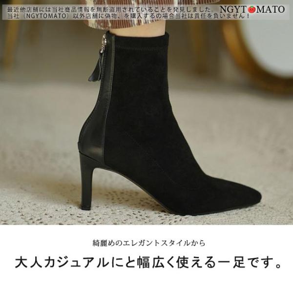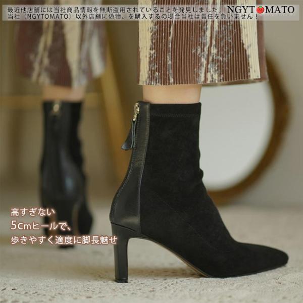 ショートブーツ レディース ヒール ポインテッドトゥ サイドジップ スエード調 ショート丈 ブーツ ブーティ 履きやすい 歩きやすい カジュアル 美脚 おしゃれ