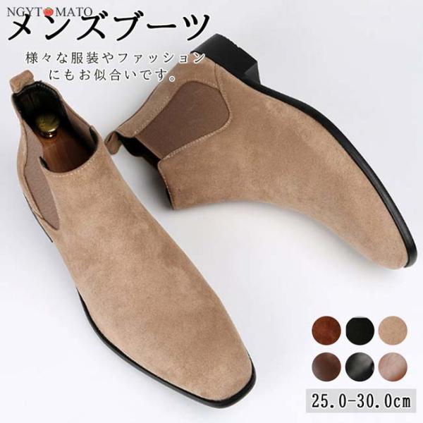 ショートブーツ メンズ ブーツ サイドジッパー ハイカット スエード調 アンクルブーツ ビジネスジュース ドレスシューズ チャッカーブーツ 歩きやすい 紳士靴 黒