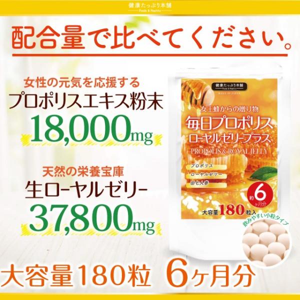 プロポリス サプリ 女性 ローヤルゼリー 高配合 約6ヶ月分 田七人参 ダイエット 妊活 活力 滋養 ふらふら サプリメント