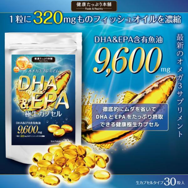 DHA サプリ オメガ3 EPA 魚油 不飽和脂肪酸 高配合 生カプセル 約1ヶ月分 フィッシュオイル 9600mg サラサラ カプセル