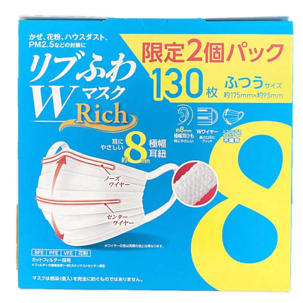 <在庫限り!>日本製リブふわマスクRich ふつうサイズ ホワイト 130枚入 リブ・ラボラトリーズ