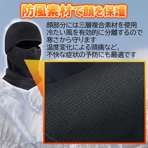 顔から首の前面には防風性と保温性を備えた3層複合生地を採用