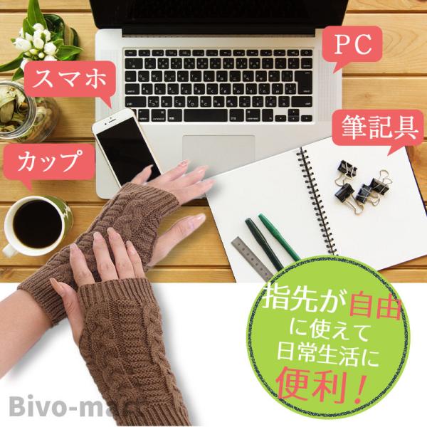 【保温効果が抜群】 温かく、ふんわりとした柔らかさと軽さが魅力のケーブルニットは、寒い季節を快適にしてくれます。ふわふわのニットが手首周りを広く温めてくれて、秋冬のおしゃれアイテムとしても最適です。