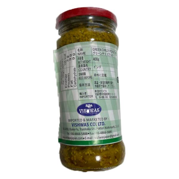 アチャール インドのお漬物 グリーンチリピクルス achar green chili 400g インド産