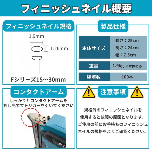 マキタ 互換品 フィニッシュネイラ 充電式 軽量モデル フィニッシュ 仕上げ釘 エアー 針 ネイルガン コードレス 電動 18V バッテリー 対応 (PIN02PN-BL)