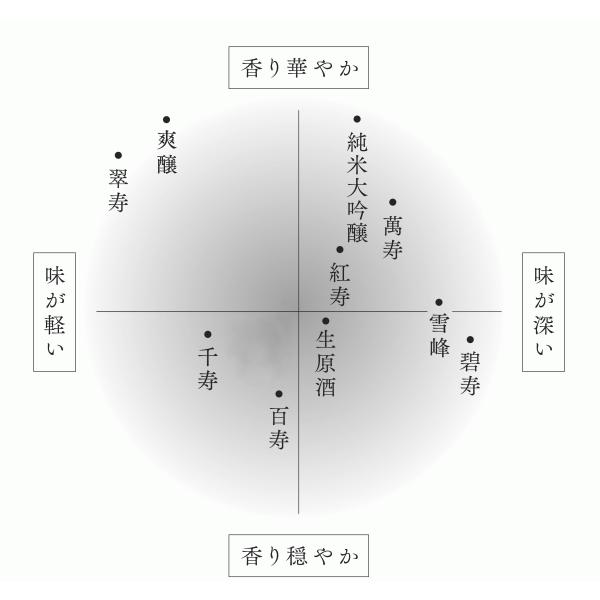 香りの主張は控えめに、辛口で飲み飽きしない酒質に仕上げた、「久保田」の基本形。ふくらみのある辛味や酸味があり、飲んだ後はドライさを感じます。シンプルな肴とともに、また、飲み疲れしないキレのため、酒だけでもお楽しみいただけます。