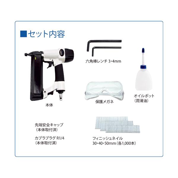 ・セット内容:六角棒レンチ3、4mm、オイルポット、保護メガネ、F型ネイル30、40、50mm各1000