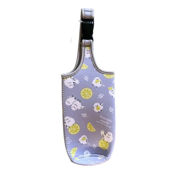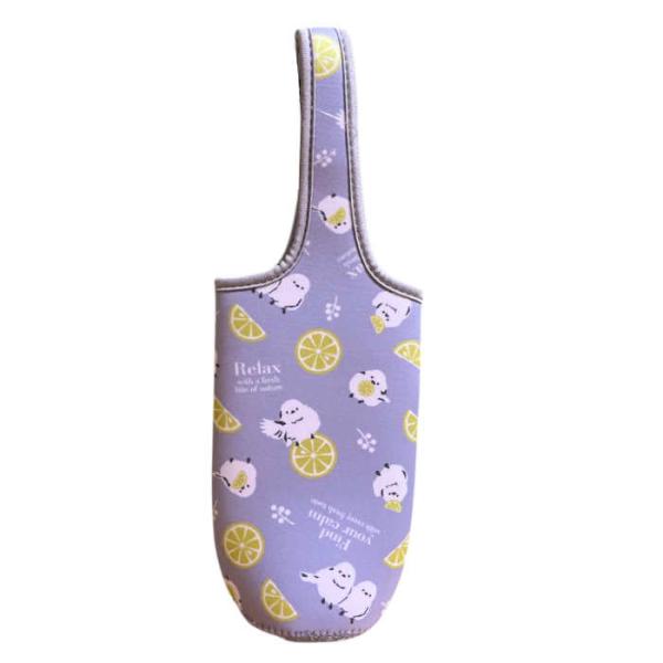 ボトルホルダーシマエナガ × レモン柄 とり 鳥 小鳥 北海道 雪の妖精 グレー 水筒 ドリンク ケース カバー 女性 男性 大人 子供 便利グッズ おすすめ