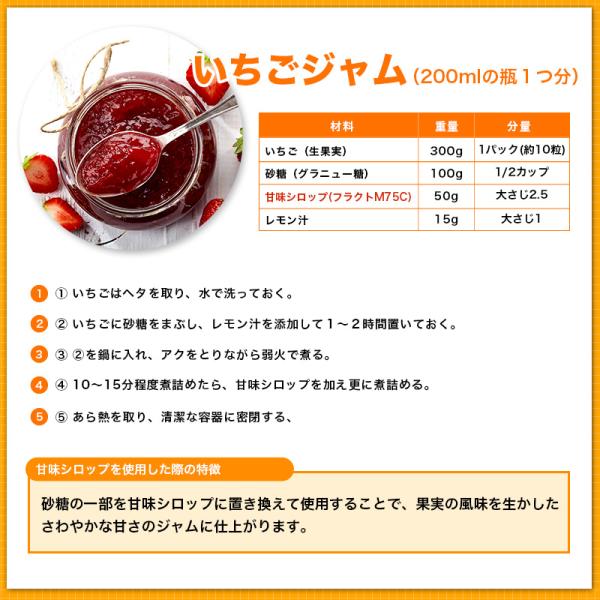 ・ぶどう糖と果糖が主成分のシロップです。砂糖よりもスッキリした爽やかな甘さが特徴です。