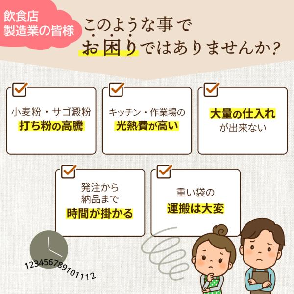 ・うどん、そば、ラーメン、パスタ、ギョウザ皮の打ち粉です。手打ち・製麺機に対応。