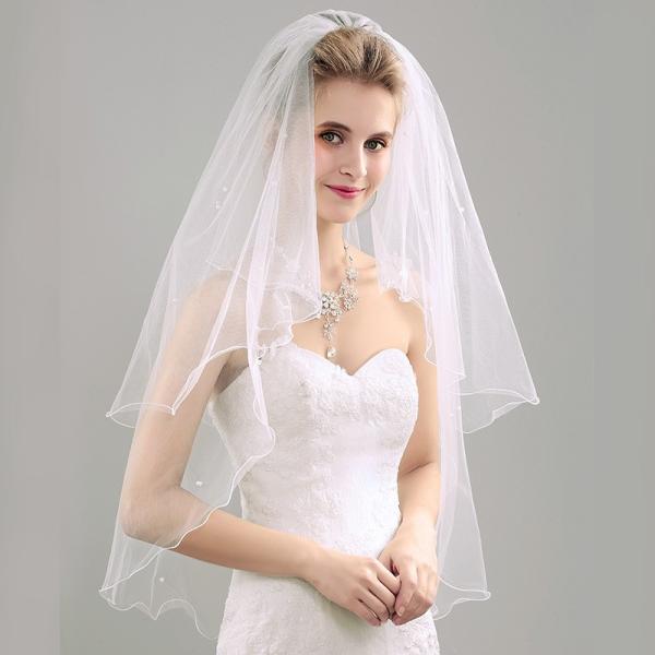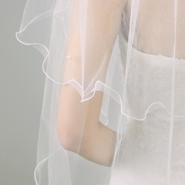 ウェディングベール ベール 花嫁 結婚式 ブライダル ミドル丈 メロウエッジベール メタルコーム付き 豪華 パール