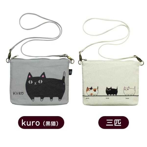 猫3兄弟 サコッシュバッグ ショルダー ネコ柄 ストラップ取り外し可能 かわいい