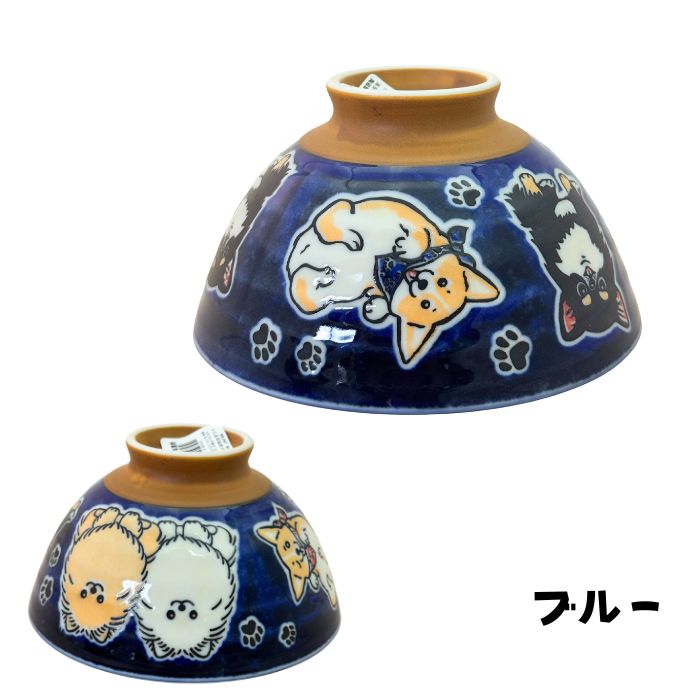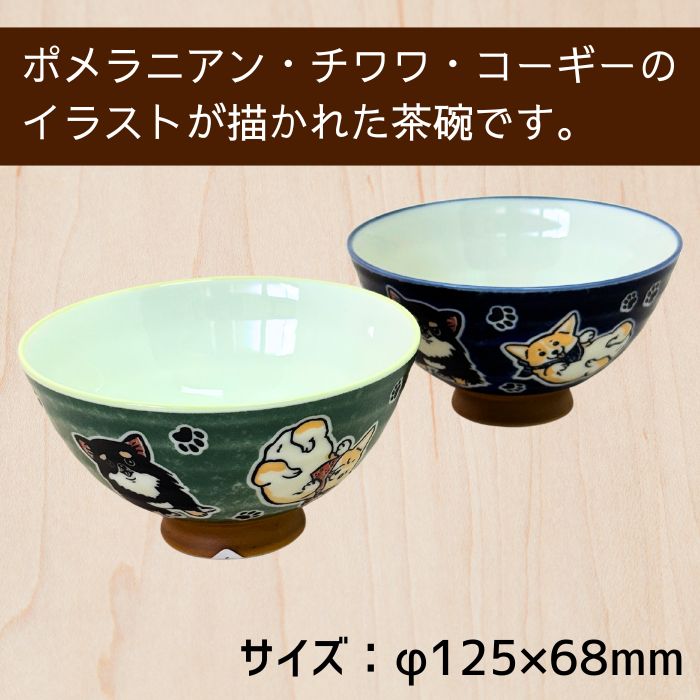 美濃焼 わんず集合 茶碗 お茶碗 飯碗 ポメラニアン チワワ コーギー グリーン ブルー 日本製 犬柄 大きめ