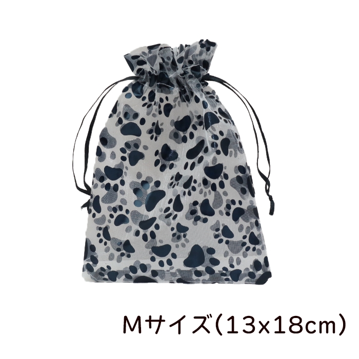肉球 オーガンジー袋 巾着 足あと あしあと 猫柄 犬柄 プレゼント袋 アクセサリー袋 ギフト