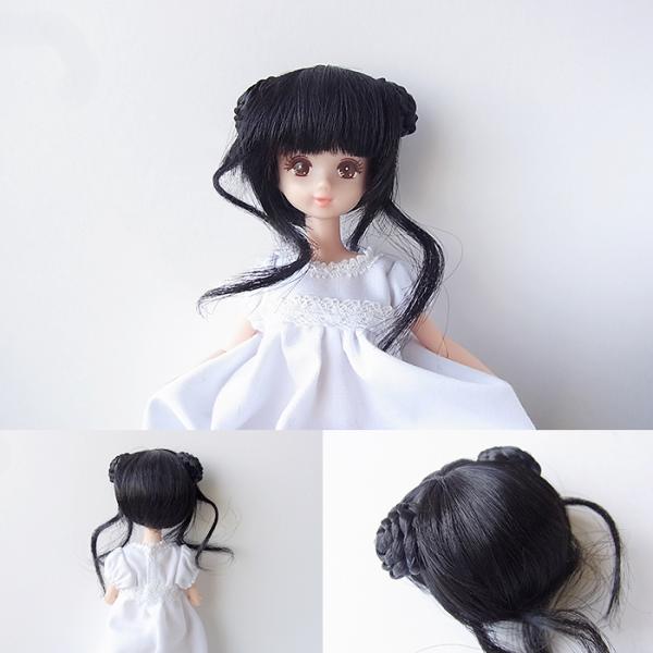 【ニニアンドキノ ドールウィッグ 4.5インチ お団子カーリー(ナチュラルブラック)】リカちゃん オビツ21 小さなドール用ウィッグ 1/6