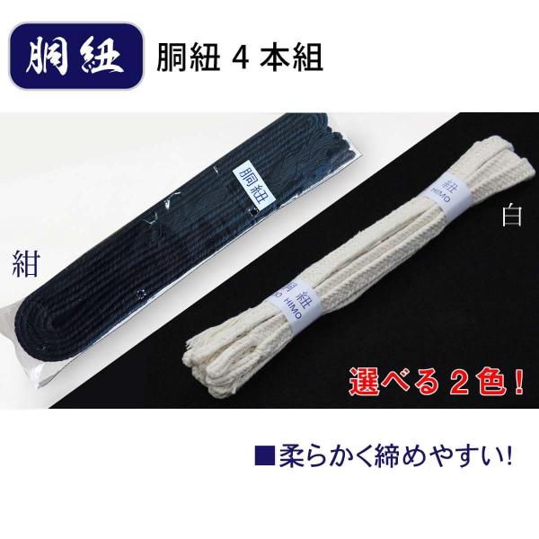 剣道 胴紐 胴ひも 4本組 選べる2色 60cm 100cm 紐 ひも 紺 白 剣道具 防具 剣道小物