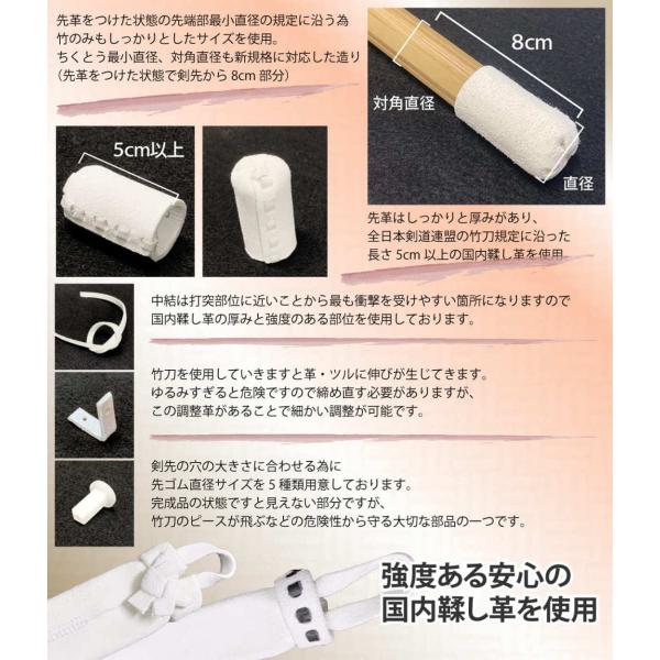 飾りの部分は高級革、竹刀自体は安心の桂竹材仕様。