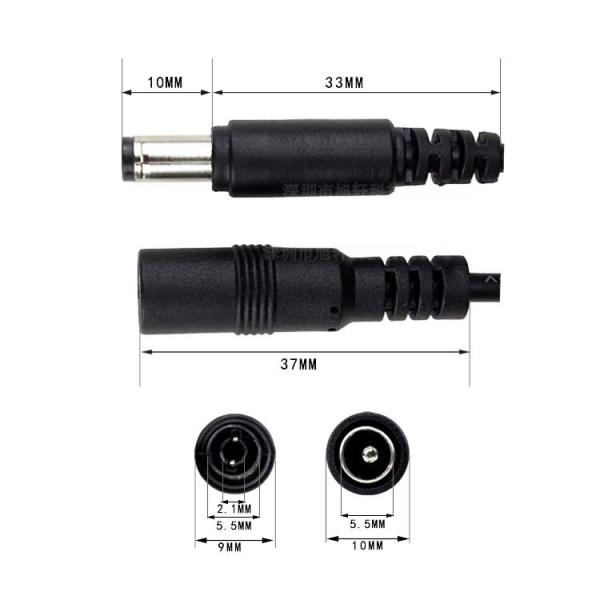 接続端子:DCオス、メス(外径5.5mm、内径2.1mm)